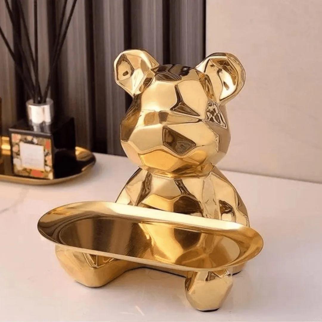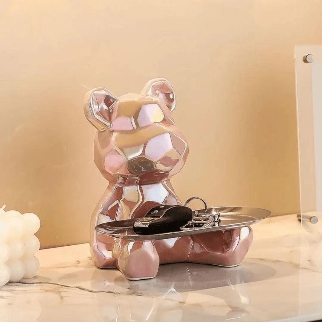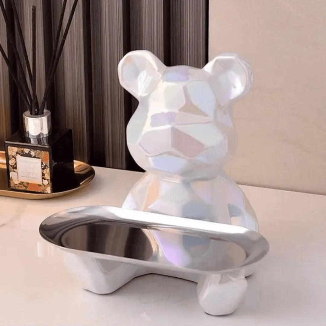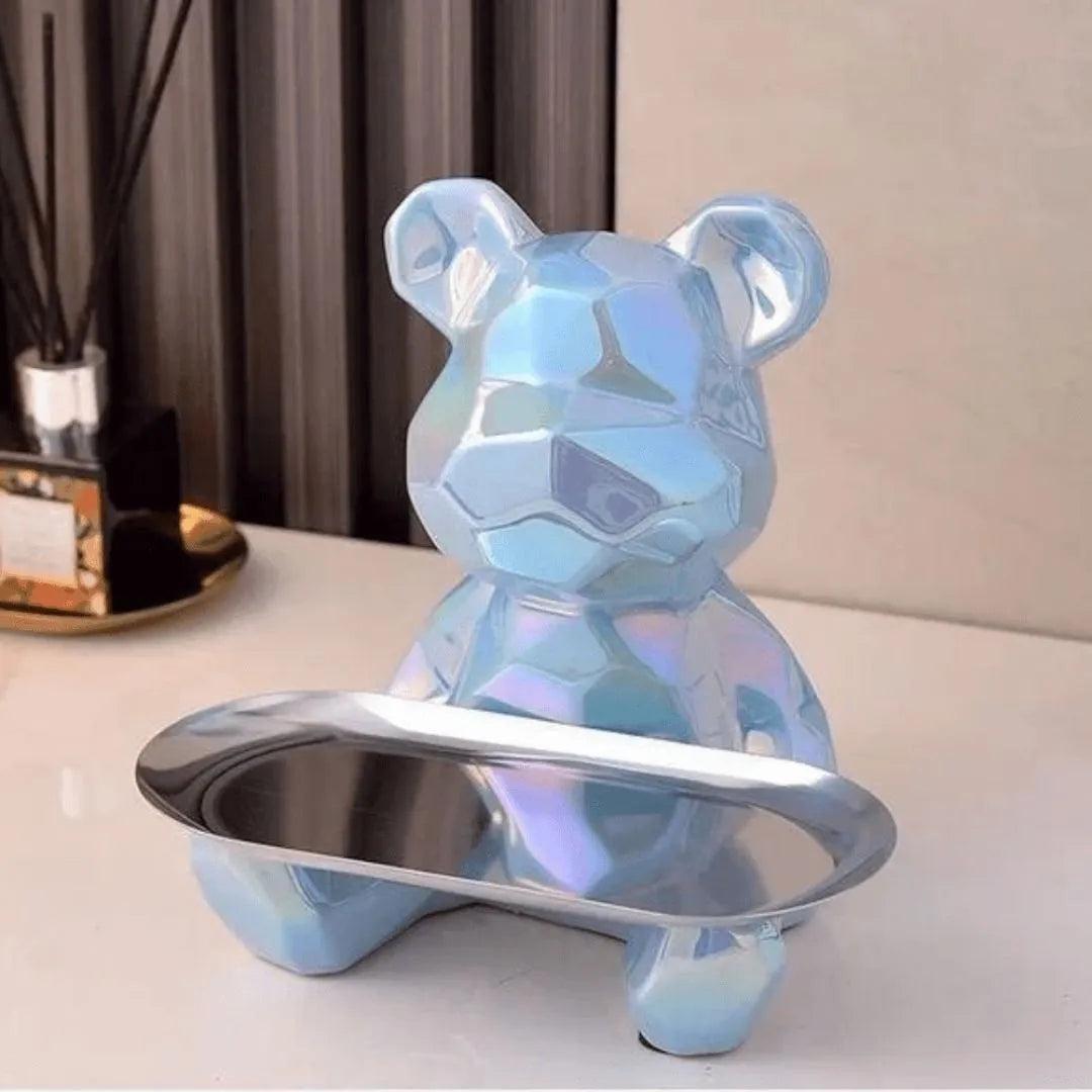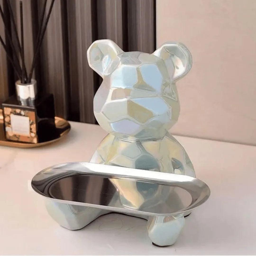 Escultura Decorativa con Bandeja Oso Geométrico